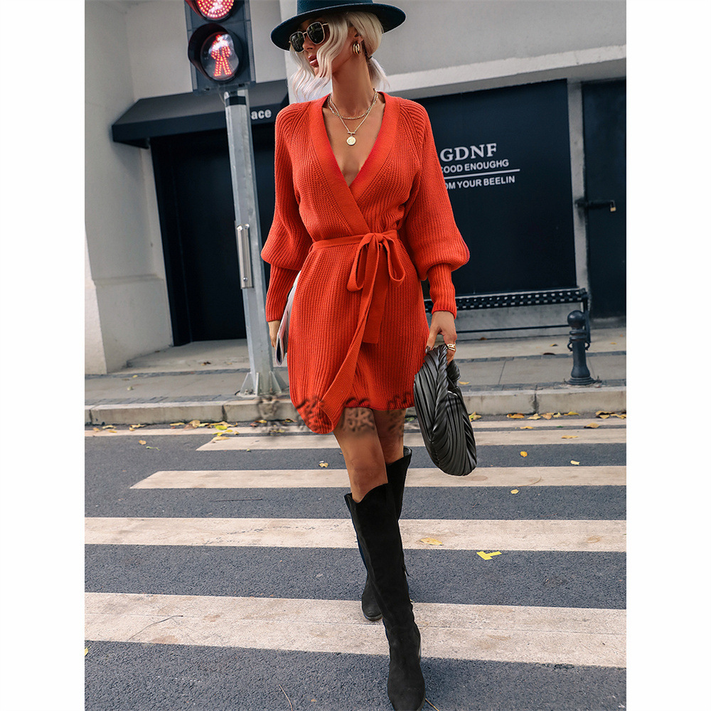 Women's Medium Long Cardigan, Solid Color, Knitted, Banded Cardigan Sweater