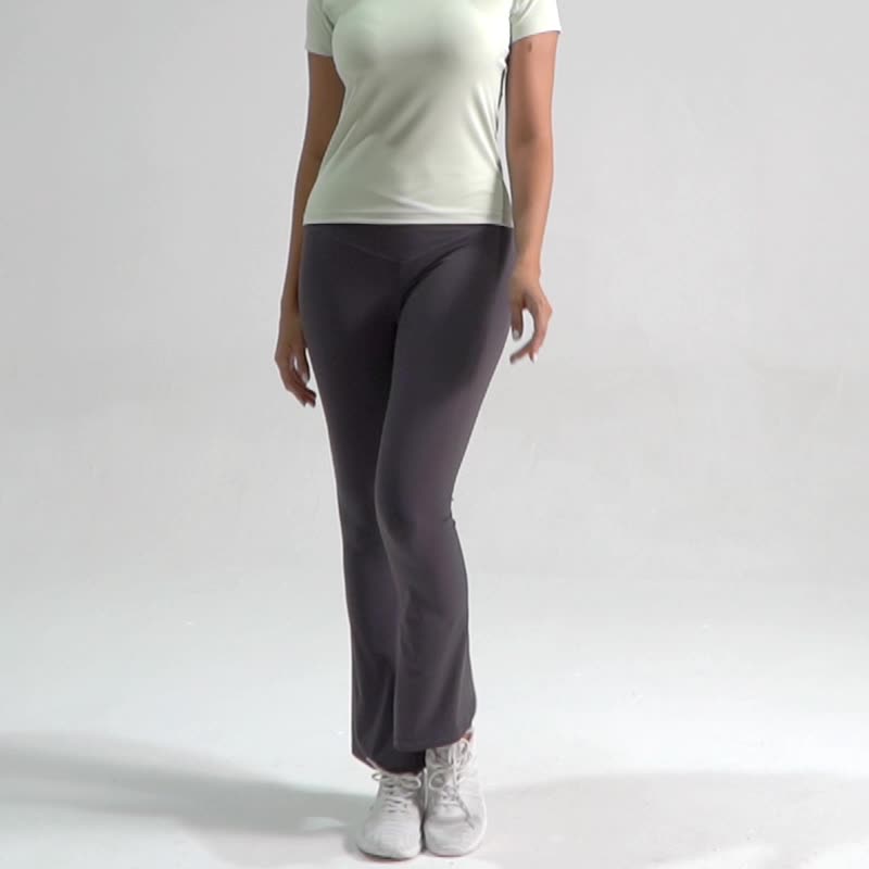 THE DEETS: Crossover waistband and a new flare leg. A v-seam made to fit you in all the right ways.