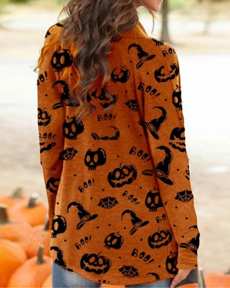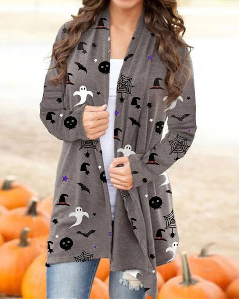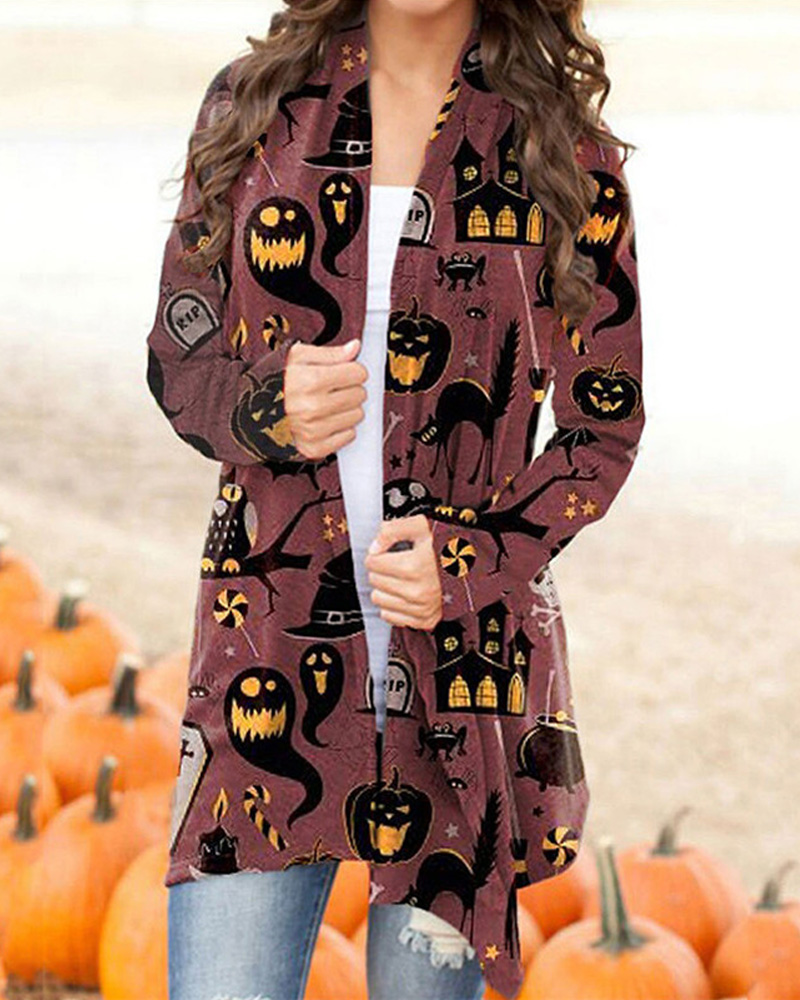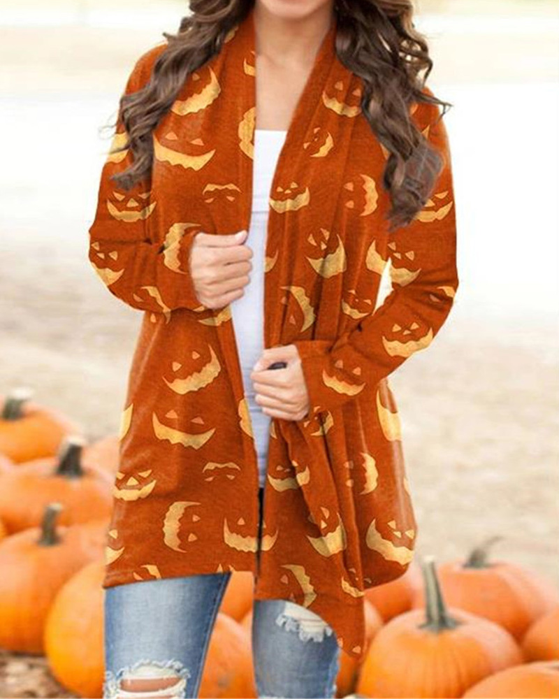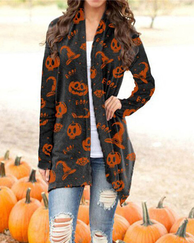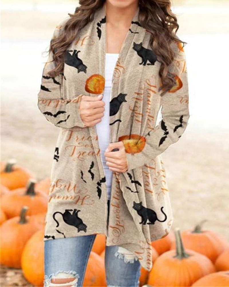 Women's Halloween Costume Casual Cardigan Pumpkin Cat Ghost Long Sleeve Tops