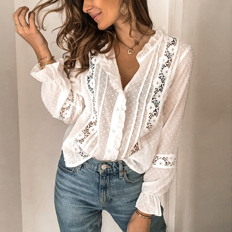 Women's Elegant Lace Up Long Sleeve Shirt Blouse
