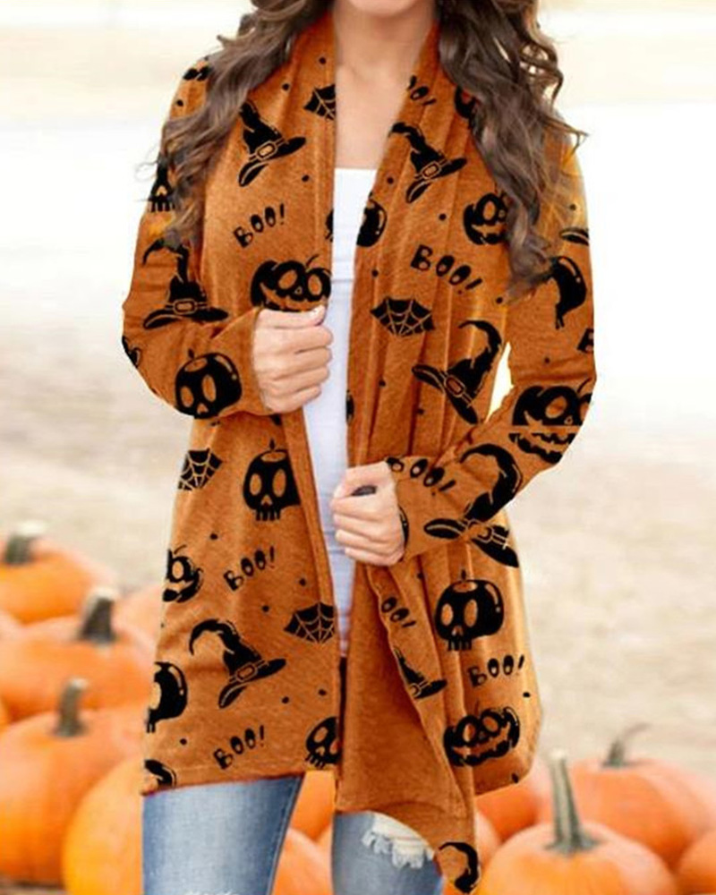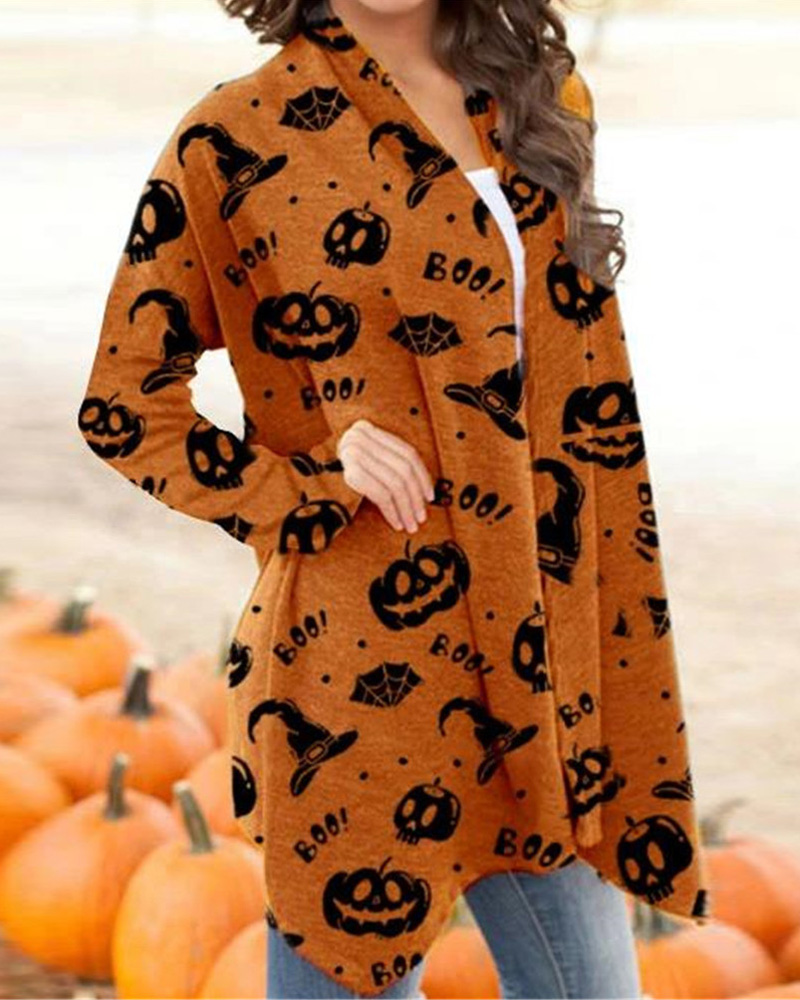 Women's Halloween Costume Casual Cardigan Pumpkin Cat Ghost Long Sleeve Tops