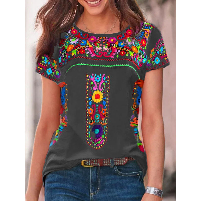Mexican T Shirt for Women Boho Floral Print Casual Tunic Tops