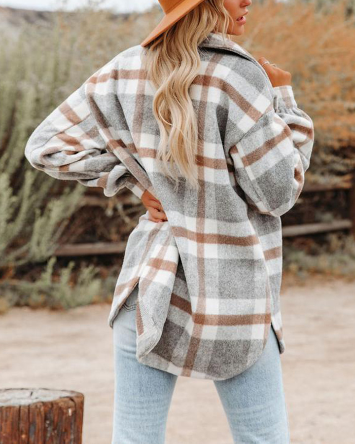Womens Boutique Flannel Plaid Lapel Button Down Pocketed Long Sleeve Shirts Oversized Blouses Tops